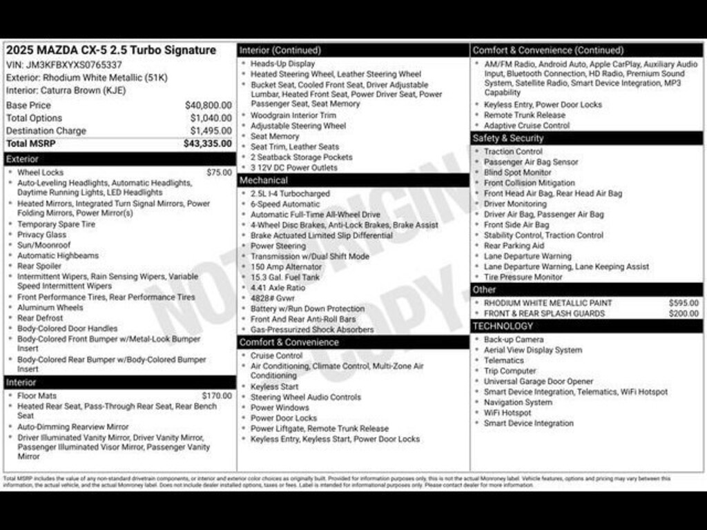 - Loyalty Offer: Get $500 Mazda Loyalty Reward Program on a new 2025 CX-5.Details