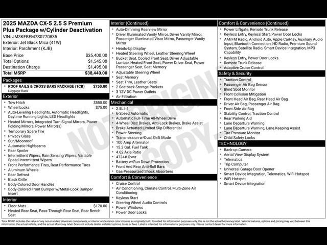 Jet Black Mica 2025 Mazda CX-5 2.5 S Premium Plus Package AWD 6-Speed Automatic SKYACTIV® 2.5L 4-Cylinder DOHC 16V