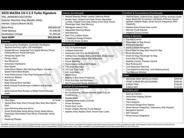 Machine Gray Metallic 2025 Mazda CX-5 2.5 Turbo Signature AWD 6-Speed Automatic 2.5L I4