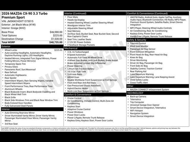 Jet Black Mica 2026 Mazda CX-90 3.3 Turbo Premium AWD 8-Speed Automatic I6 Turbo