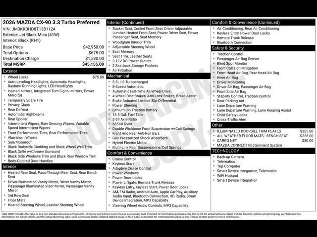 Jet Black Mica 2026 Mazda CX-90 3.3 Turbo Preferred AWD 8-Speed Automatic I6 Turbo