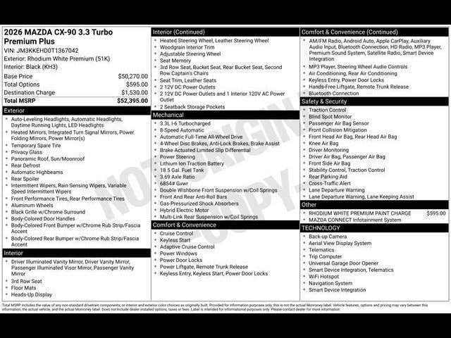 Rhodium White Premium 2026 Mazda CX-90 3.3 Turbo Premium Plus AWD 8-Speed Automatic I6 Turbo