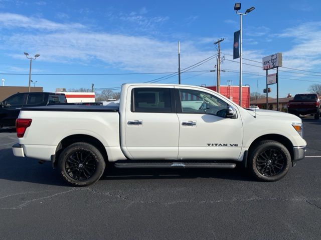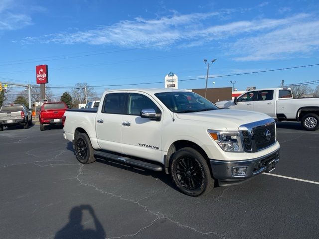 Recent Arrival! Clean CARFAX. NAVIGATION, LEATHER SEATS, CLEAN CARFAX, LOCAL TRADE, This vehicle is located at 1st Choice Motors. 4799 S Amherst Hwy, Madison Heights, VA 24572., 4WD. Pearl White Metallic 2018 Nissan Titan SL 4WD 7-Speed Automatic 5.6L V8