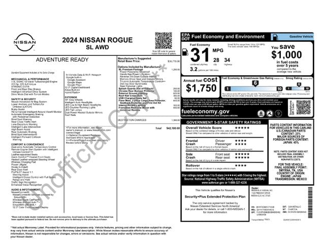 Gun Metallic 2024 Nissan Rogue SL AWD CVT with Xtronic 1.5L DOHC Fully Detailed, AWD.